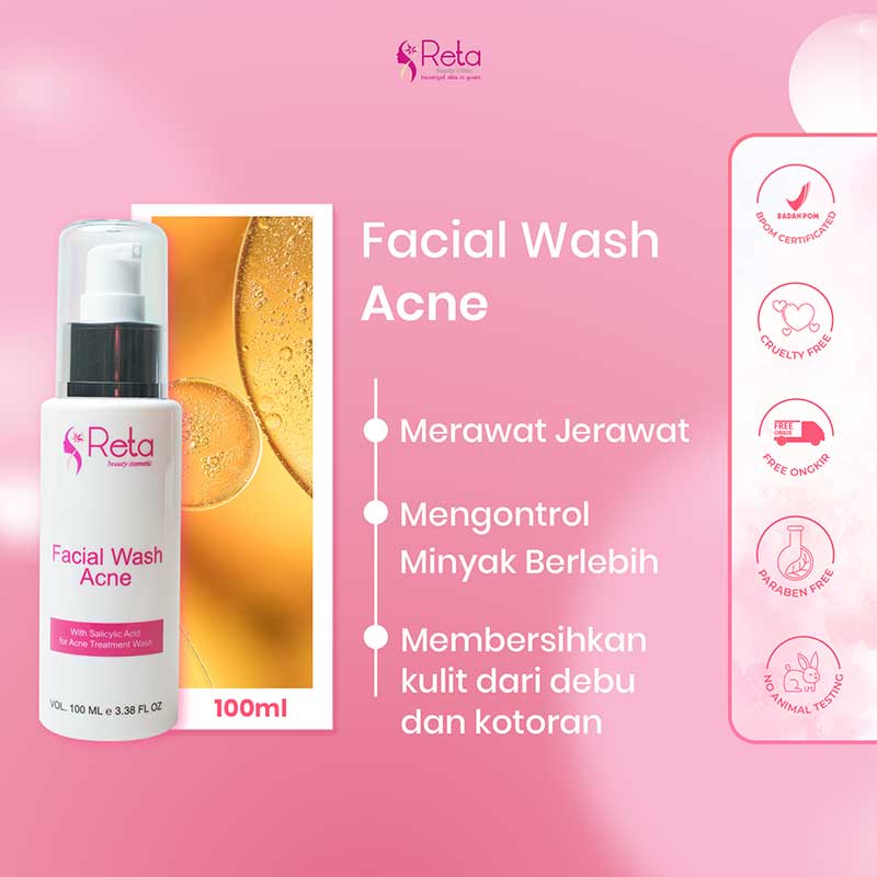 Facial Wash Acne diformulasikan khusus untuk tipe kulit berjerawat dengan Salicylic acid berfungsi membersihkan wajah dari kotoran, minyak berlebih & sisa make up. Kandungan Anti Acne-nya membantu merawat kulit wajah yang berjerawat. Kulit wajah menjadi lebih bersih, segar dan terawat. Kemasan tube dengan volume 100ML e 3.38 FL OZ yang mudah digunakan serta praktis dibawa kemana aja. Cocok untuk tipe kulit berminyak dan mudah berjerawat.