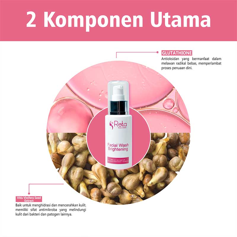 Facial Wash Brightening dari Reta Beauty Clinic mampu membersihkan kulit wajah dari kotoran, minyak berlebih & sisa make up. Kandungan brightening agent & moisturizernya menjadikan kulit tampak lebih bersih dan cerah. Penggunaan rutin akan sangat membantu mencerahkan wajah, memutihkan dan membuat wajah semakin bersih. Produk bisa dibeli setelah konsultasi dokter. Kemasan bentuk tube dengan volume 100ML e 3.38 FL OZ bisa dipakai setiap kali cuci muka, mudah dipencet, praktis dan mudah dibawa kemana saja.